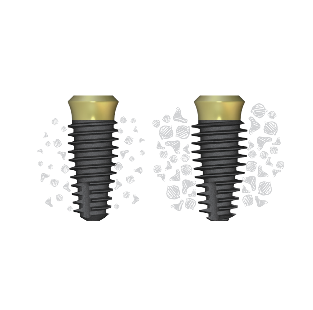 • Alta estabilidad primaria con menor complejidad clínica. La geometría de rosca KnifeThread permite alcanzar una elevada estabilidad primaria, incluso en hueso de baja densidad, facilitando protocolos de carga temprana o provisional inmediata.