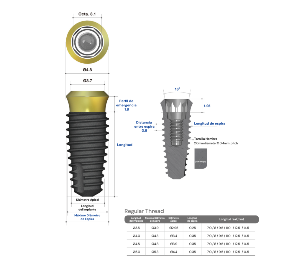 • Alta resistencia mecánica y estabilidad primaria optimizada.